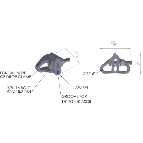 • Used to drop cable installations as an attachment to 1/0 - 4/0 ASCR for accepting the bail of Drop Wire Clamps.