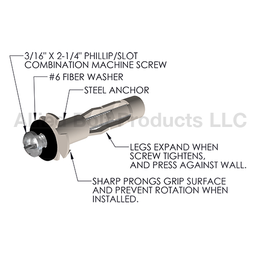 3/16" X 2-1/4" B 10 ANCHOR WALL SCREW
