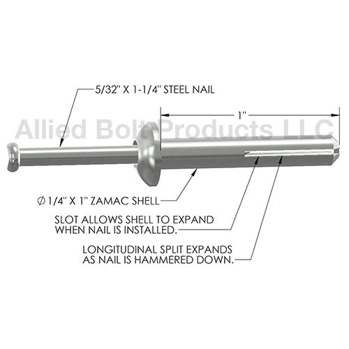 • Comprised of a Zamac shell and a flat head nail.