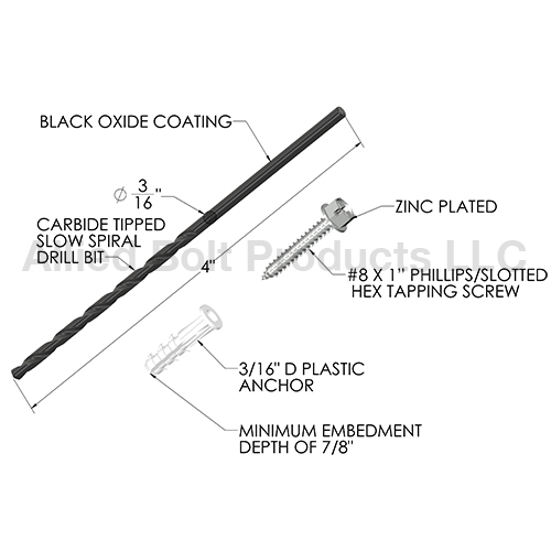 3/16" D PLASTIC ANCHOR KIT WITH COMBO HEX TAPPING SCREWS