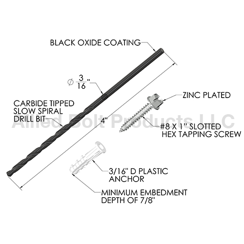 3/16" D PLASTIC ANCHOR KIT WITH SLOT HEX TAPPING SCREWS