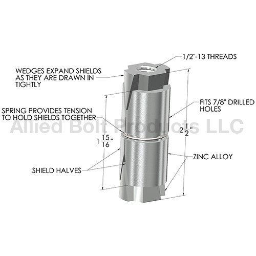 • As the anchor is tightened, the opposing wedges at either end are drawn in tightly providing full length, 360° expansion over a large bearing area.