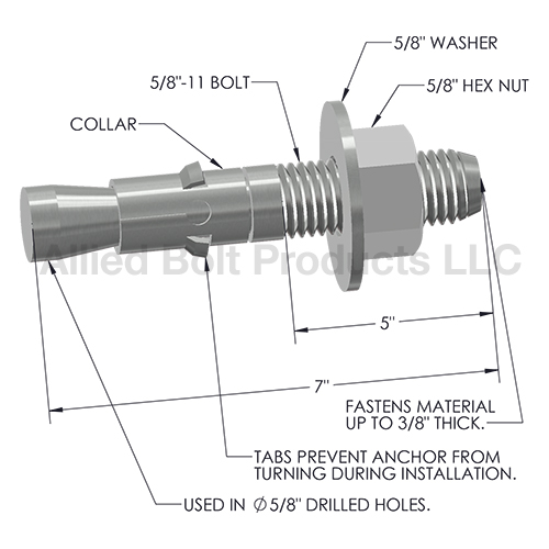 5/8" x 7" 302 STAINLESS STEEL HEX WEDGE ANCHOR