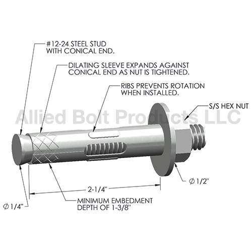 1/4" X 2-1/4" STAINLESS HEX NUT SLEEVE ANCHOR