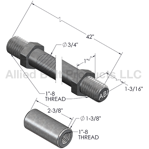 3641 3/4" X 3-1/2' ANCHOR ROD WITH ASSEMBLED COUPLING NUT 1 1 6