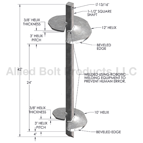 42" SQUARE SHANK MULTI HELIX ANCHOR WITH 10" AND 12" HELICES