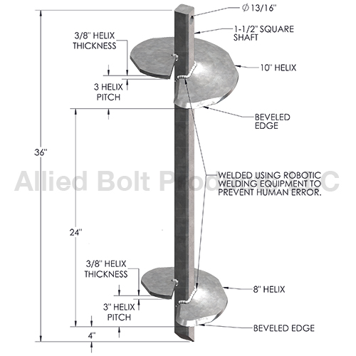 36" SQUARE SHANK MULTI HELIX ANCHOR WITH 8" AND 10" HELICES 7,000LB RATING