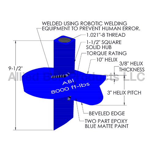 10" SINGLE SOLID SQUARE HUB HELIX POWER DRIVEN ANCHOR 1-1/2" HUB FOR 3/4" & 1" RODS - 8000 FT. LB.