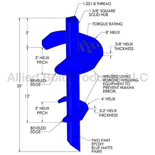 3430 4" AND 8" TWIN SOLID SQUARE HUB HELIX POWER DRIVEN ANCHOR 1-3/8" HUB - 6000 FT. LB. FOR 3/4" AND 1" RODS 1 1 35