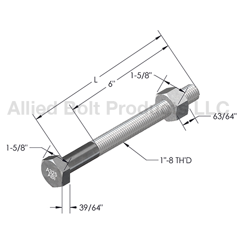 1" X 12" A325-1 HEAVY HEX BOLT WITH A563-DH HEAVY HEX STRUCTURAL NUT GALVANIZED