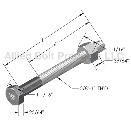 5/8" X 16" A325-1 HEAVY HEX BOLT WITH A563-DH HEAVY HEX STRUCTURAL NUT GALVANIZED