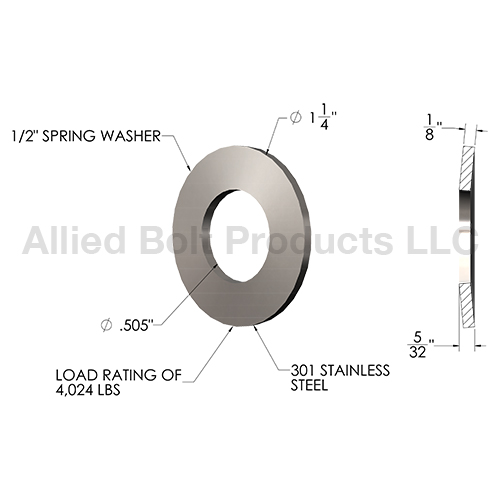 1-1/4" X .505" X .125" X .143" CONICAL SHAPED DISC SPRING WASHER