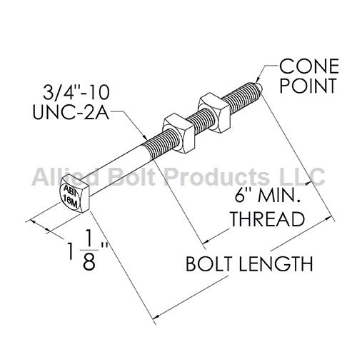 • Bolt head marking (ABI) appears on head of each bolt and is registered with the U.S. Patent Office per the Fastener Insignia Act. Tensile load designation mark (i.e. 10M, 16M, 25M) also appears on head of each bolt.