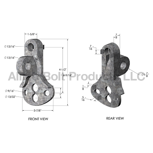 • Mounting options are either two 3/4" diameter holes that are spaced 4" or 5" apart or one 3/4" mounting bolt and two 1/2" diameter lag screws.