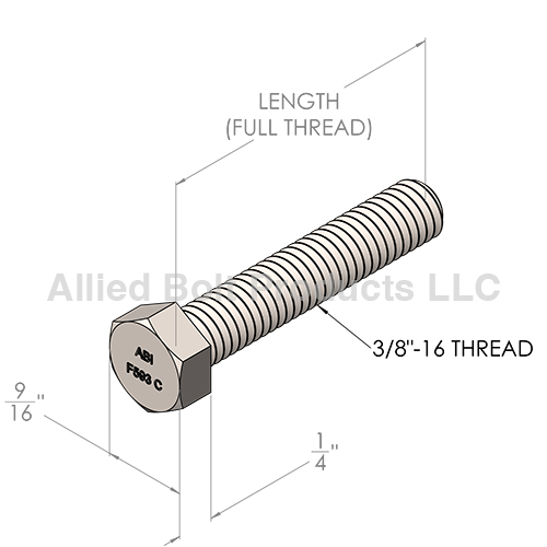 3/8"-16 X 2" HEX TAP BOLT FULL THREAD 304 STAINLESS STEEL