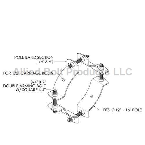 • Each Adjustable Pole Band Assembly contains four 1/4" x 4" stampings, four 3/4" threaded studs, and sixteen 3/4" Regular Square Nuts.