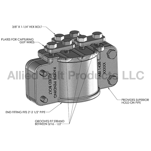 • End fitting is comprised of two mating castings and three plates to capture guy wires.
