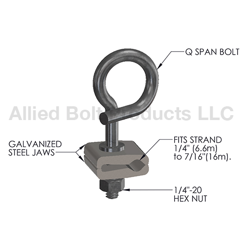 • Attaches to strand ranging in size from 1/4" (6.6m) to 7/16"(16m).