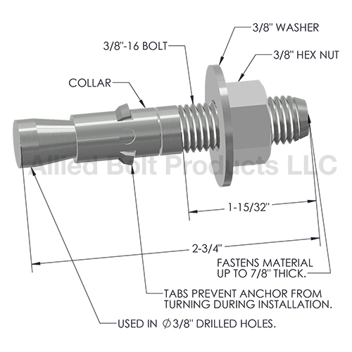 3/8" x 2-3/4" 302 STAINLESS STEEL HEX WEDGE ANCHOR