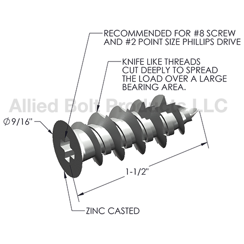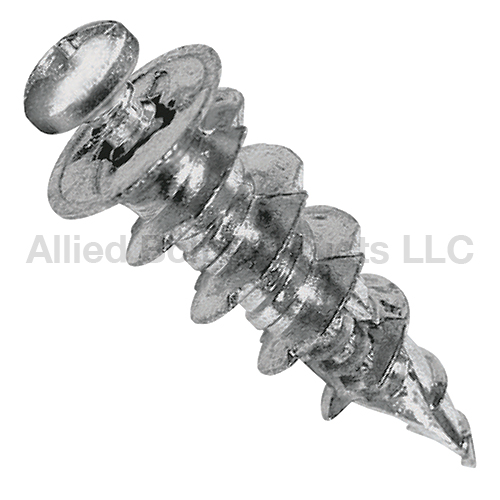• thin knife-like threads have an oversized outer diameter that cuts deeply in sheetrock to spread the load area over a large bearing area.