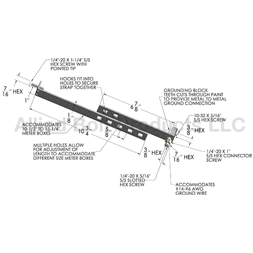 • Provides a permanent bonding connection between a #14 - #6 AWG ground wire and a meter box.