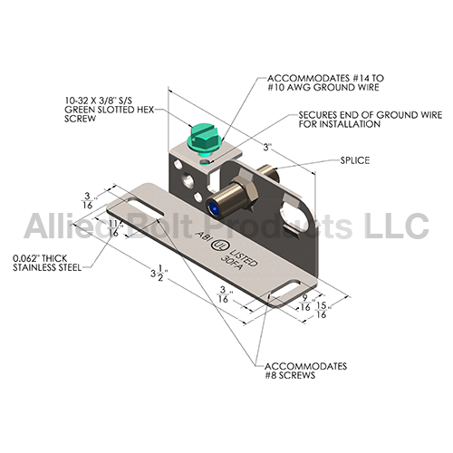 • Comprised of a stamped bracket, (1) F81 splice, 1 panel nut with washer, 1 ground screw and 2 mounting screws.