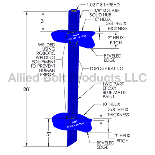 10" SOLID SQUARE HUB TWIN HELIX POWER DRIVEN ANCHOR 1-3/8" HUB - 6000 FT. LB. FOR 3/4" AND 1" RODS