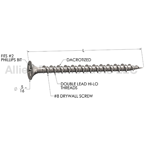 #8 X 3" PHILLIP BUGLE HEAD HI-LO THREAD DRYWALL SCREW