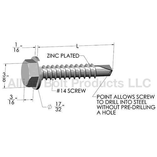 #14 X 1" UNSLOTTED HEX WASHER TEK SCREW ZINC PLATED #3 POINT