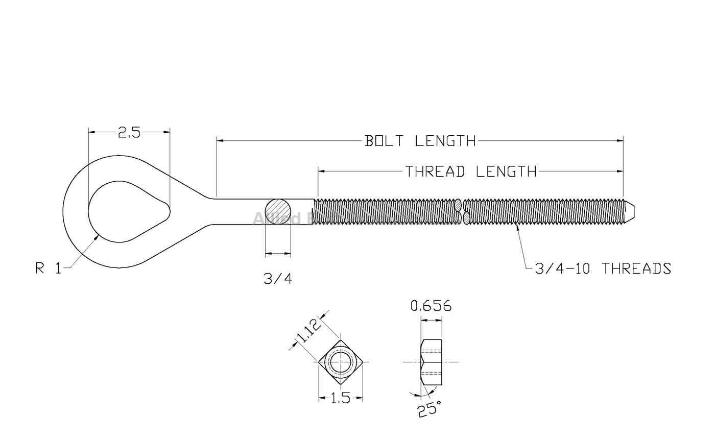 • Each Double Arming Oval Eye Bolt is provided with three regular square nuts.
