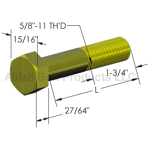 5/8"-11 X 14" GRADE 8.8 HEX CAP SCREW YELLOW ZINC PLATED